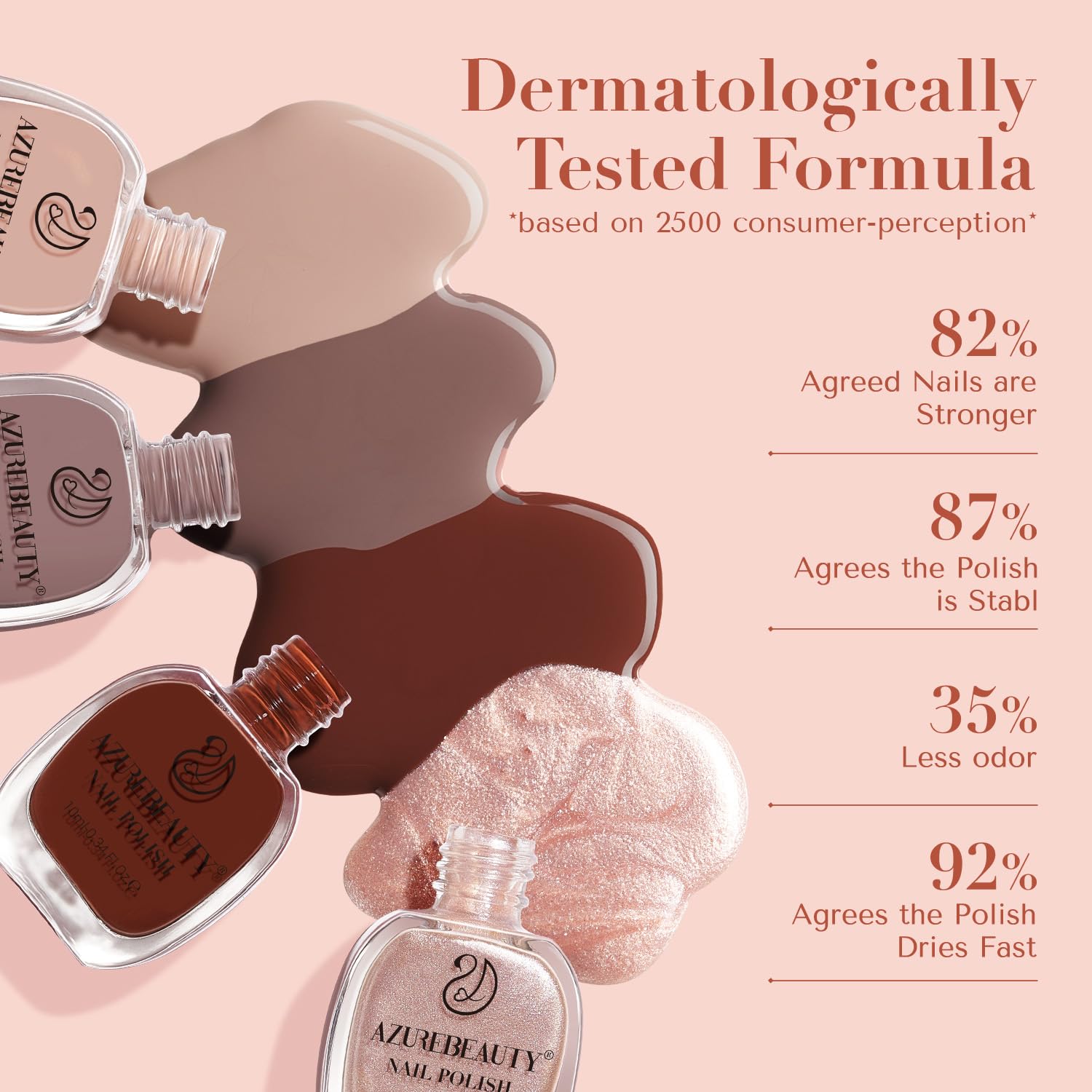 Quick Drying & Easy to Use: AZUREBEAUTY nail polish doesn’t need a nail lamp, it can be quickly air dried in 60 seconds and painted in 3 minutes. Our nail polish set extracts high-purity pigments for strong coloring; Even for beginners, you can get a professional-looking manicure at home, and getting beautiful is so easy