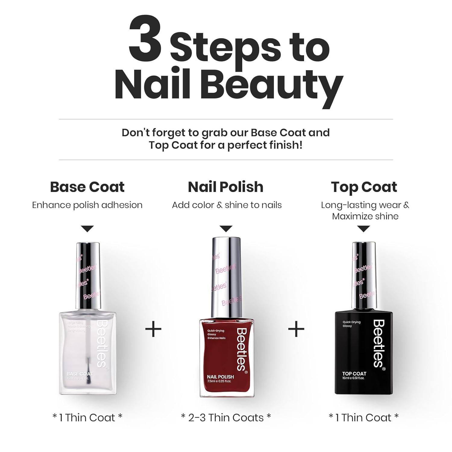 Quick-Drying:Beetles classic nail polish no need for UV /led lights, reduced complex tools and waiting times, and easy-to-apply nail polish brushes can reduce the risk of streaks and bubbles.