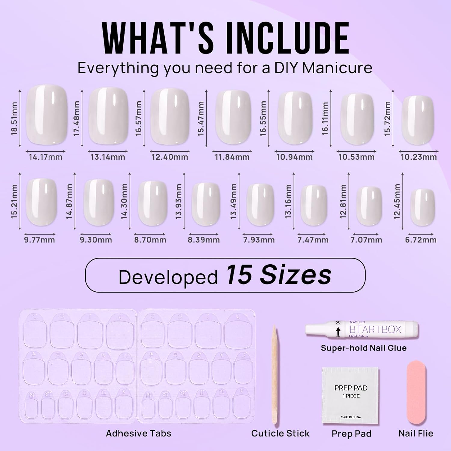What’s Include:15 nail sizes ensure a totally custom fit, plus we give you everything needed just in case! Each set comes complete with a storage box, nail glue, adhesive tabs, double-sided nail file, cuticle stick, and prep pad.