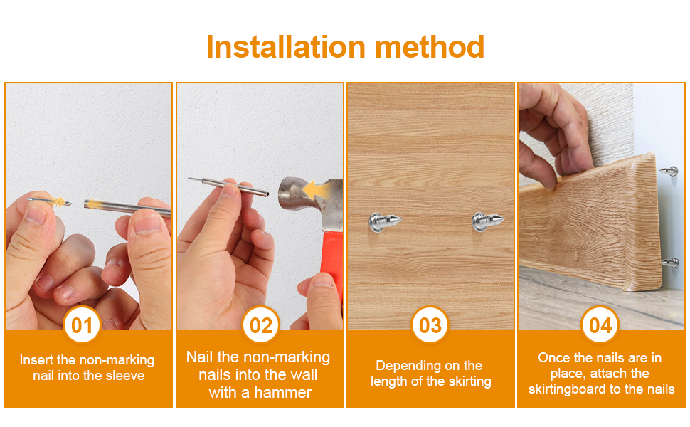 🔹4 Tools for Effortless Installation – Includes 4 installation barrels for angled driving; no pre-drilling needed. Ideal for DIYers tackling baseboard projects.