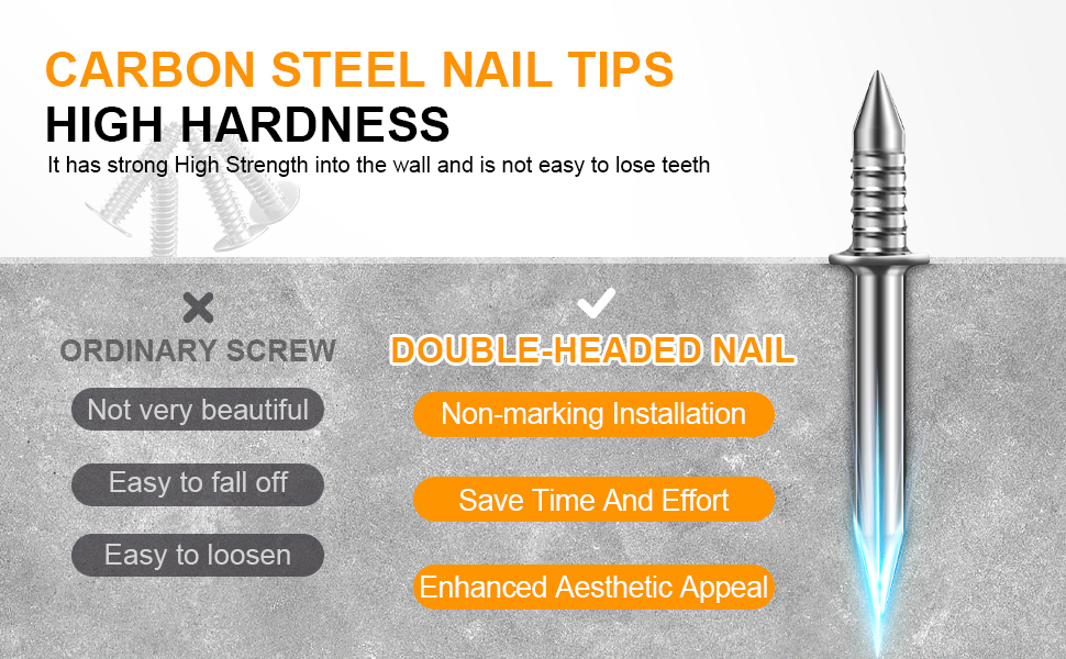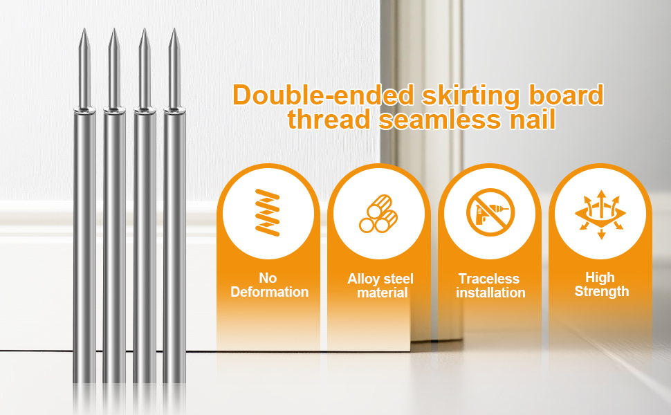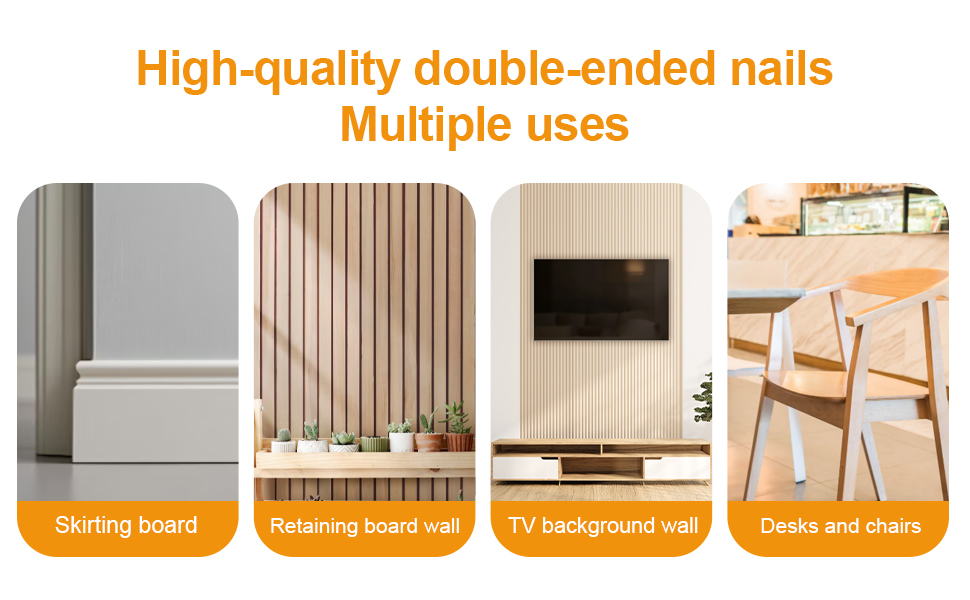🔹Invisible Professional Finish– Double-headed design hides nails completely within joints, eliminating visible holes for seamless skirting boards and trim.
