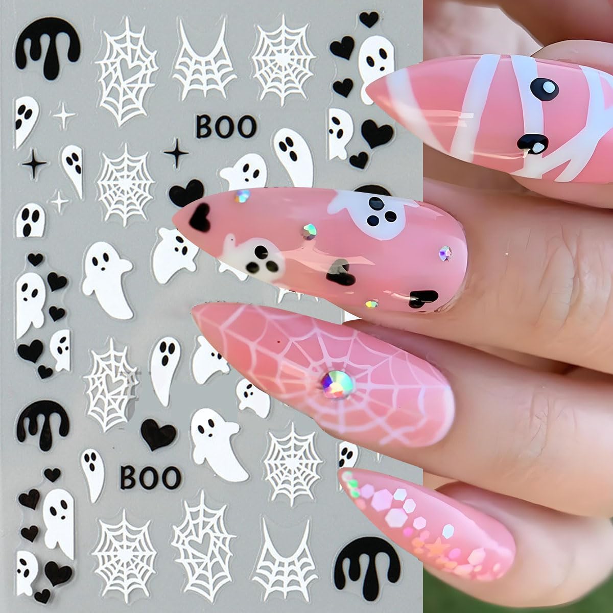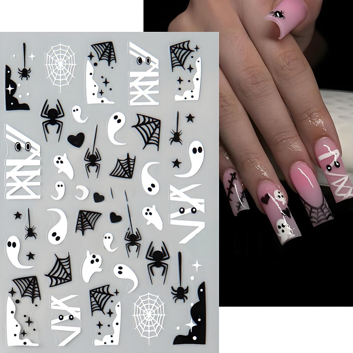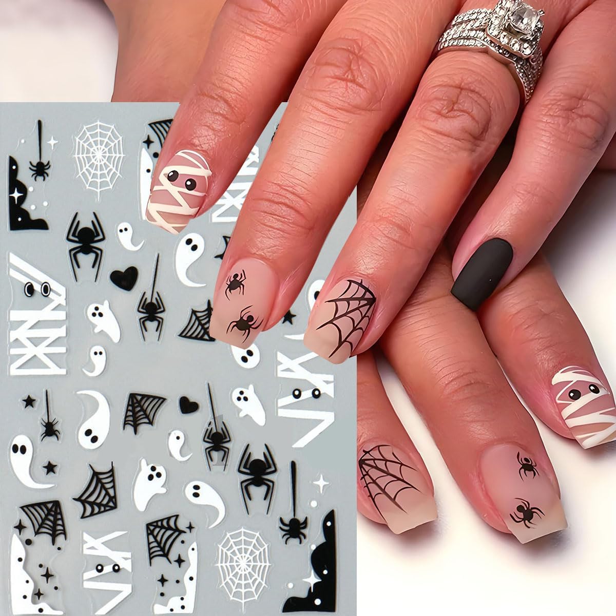 【Easy to use】Ghost Spider Web design Halloween nail stickers, just peel it from the paper and stick it on your nails. Easy to use, Ideal for natural or acrylic nails.