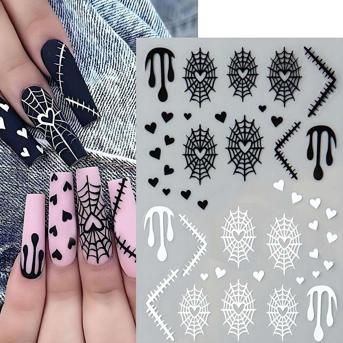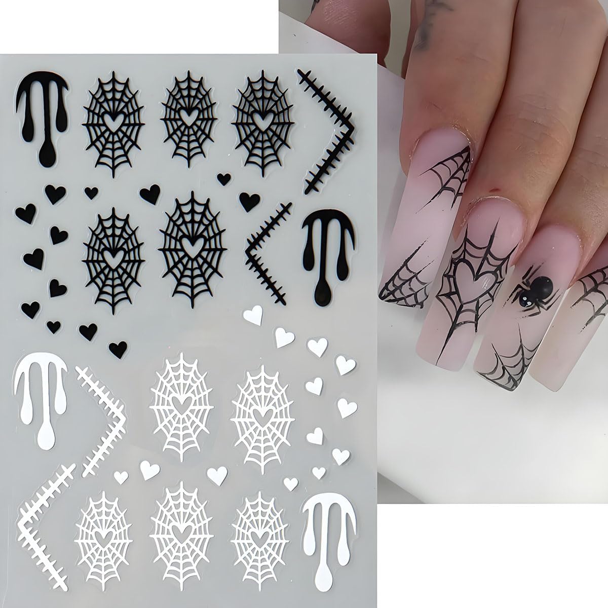 Quantity: 4 Sheets Self-Adhesive Ghost Spider Web Nail Art Stickers Decals