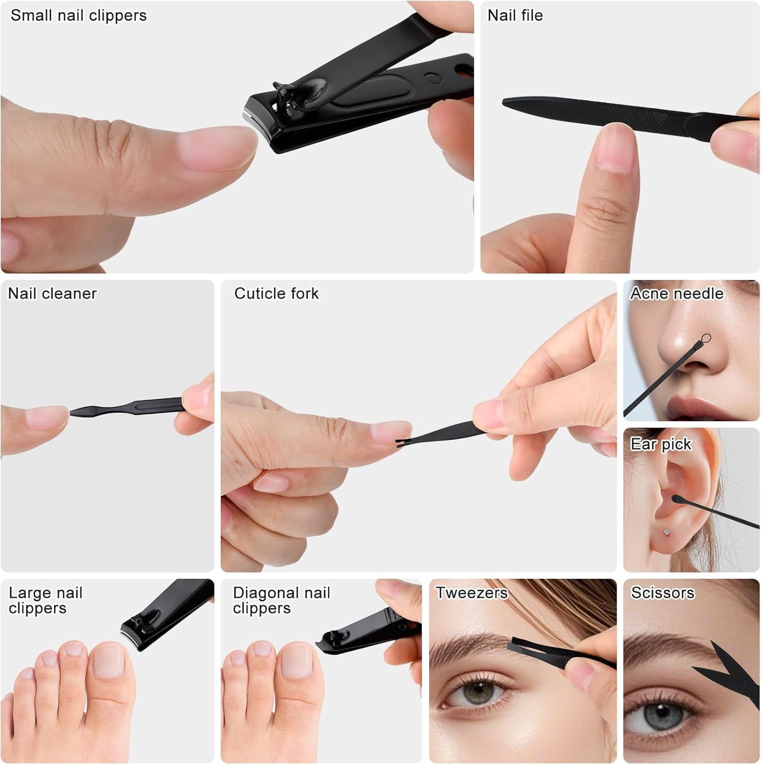 Fully functional: powerful professional nail clippers, foot trimming tools, precision dead skin pushing and trimming, double-sided professional nail files, high-quality stainless steel tweezers, ear picks, eyebrow trimming scissors, etc., avoiding useless tools