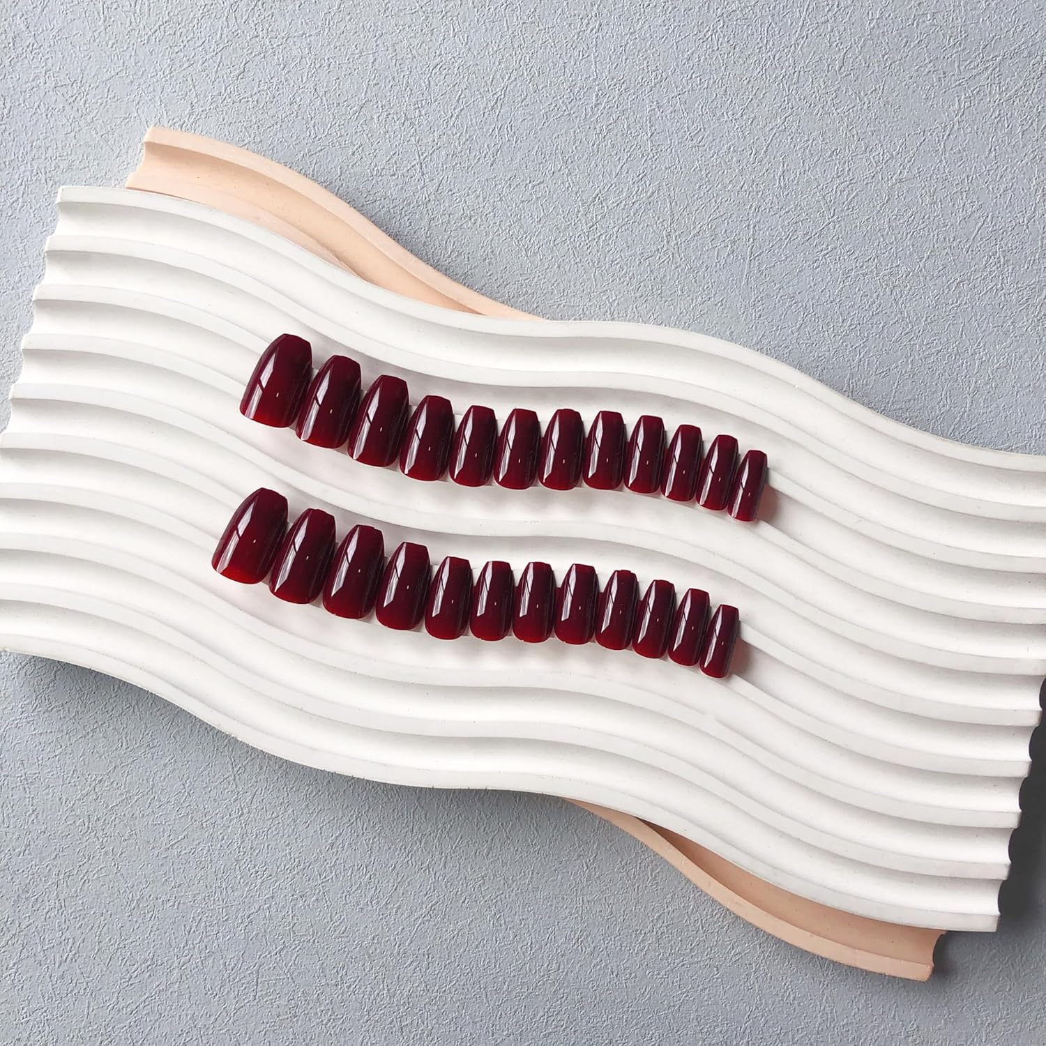 Burgundy Red Short Coffin Press on Nails Medium Coffin Nails Press ons, Dark Red Glue on Short Fake Nails for Women Ballerina Acrylic False Nail Handmade Medium Square Gel Nails