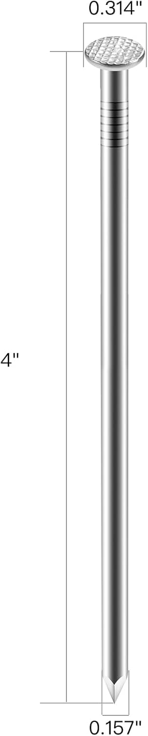 Cost-Effective Long Nails: You will get 1LB (40pcs) 4 inch × 9Gauge/3.8mm stainless steel hardware nails, which can meet your long-term use needs
