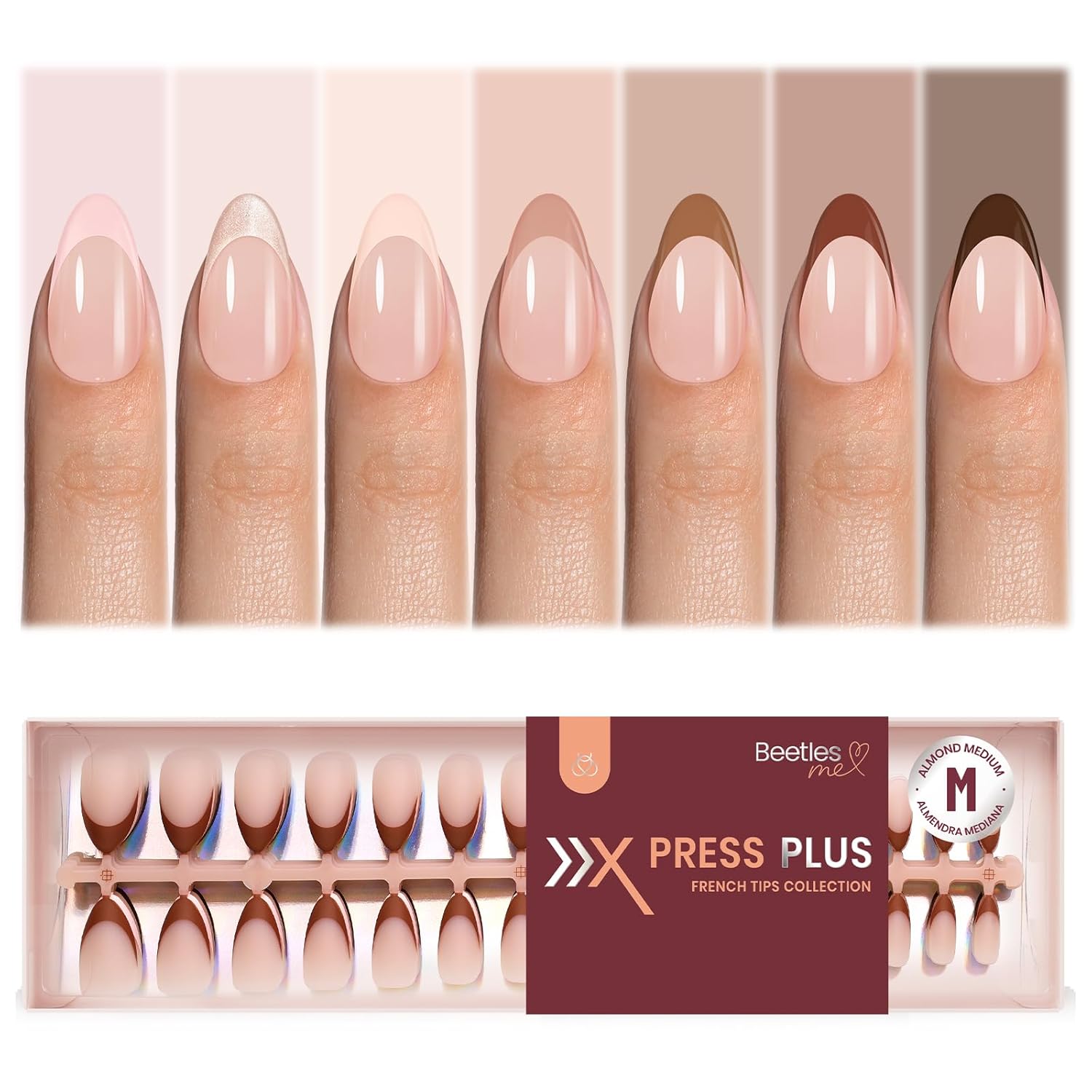 【Beetles Gel Nail Tips】Beetles French Tip press on Nails come in 7 popular colors, including a shimmering cat eye magnet french tip, totaling 224 pieces across 16 sizes. Beetles medium press on nails gives you more choices. The nails press ons are labeled with the numbers “0-13”, which can be widely adapted to different finger sizes, making it easy for you to find your size quickly.