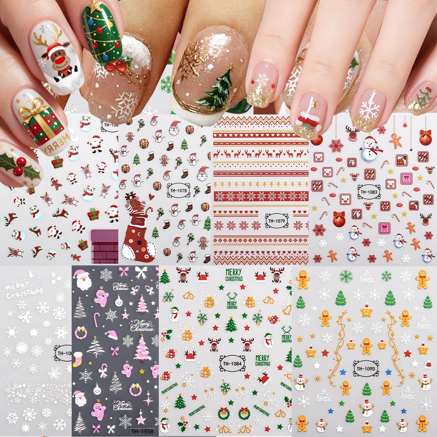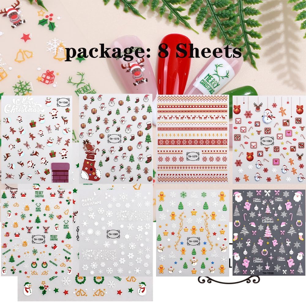 Christmas Nail Stickers➤8 sheets christmas delicated nail stickers give people an intuitive and bumper newyear feeling, and satisfy your rich imagination of nail DIY .