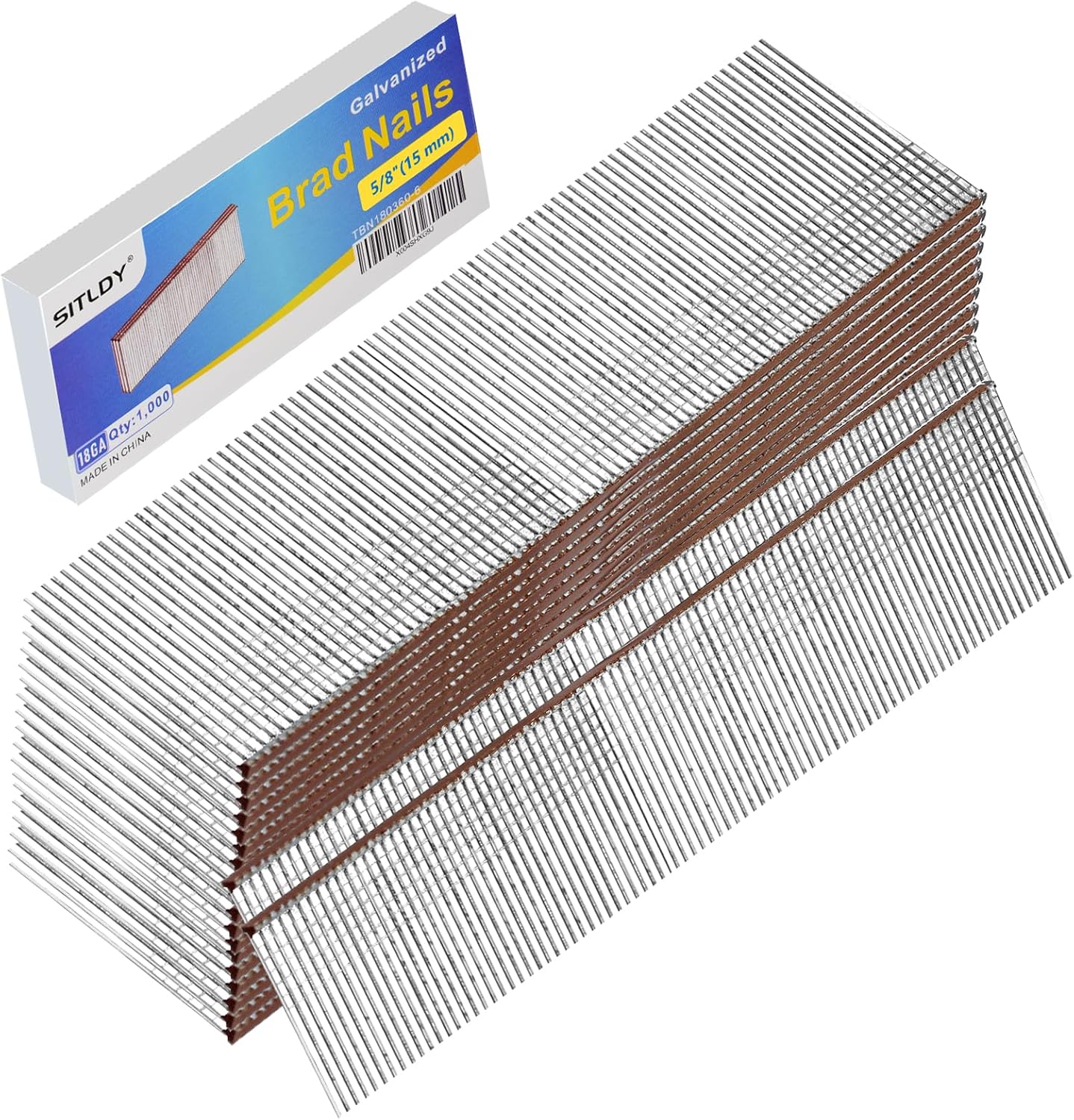 SITLDY 18 Gauge Galvanized Brad Nails, Brown T-head 5/8 Inch 1000-Pack, Small Finishing Nail Gun Nails for Pneumatic, Electric 18GA Brad Nailer Gun
