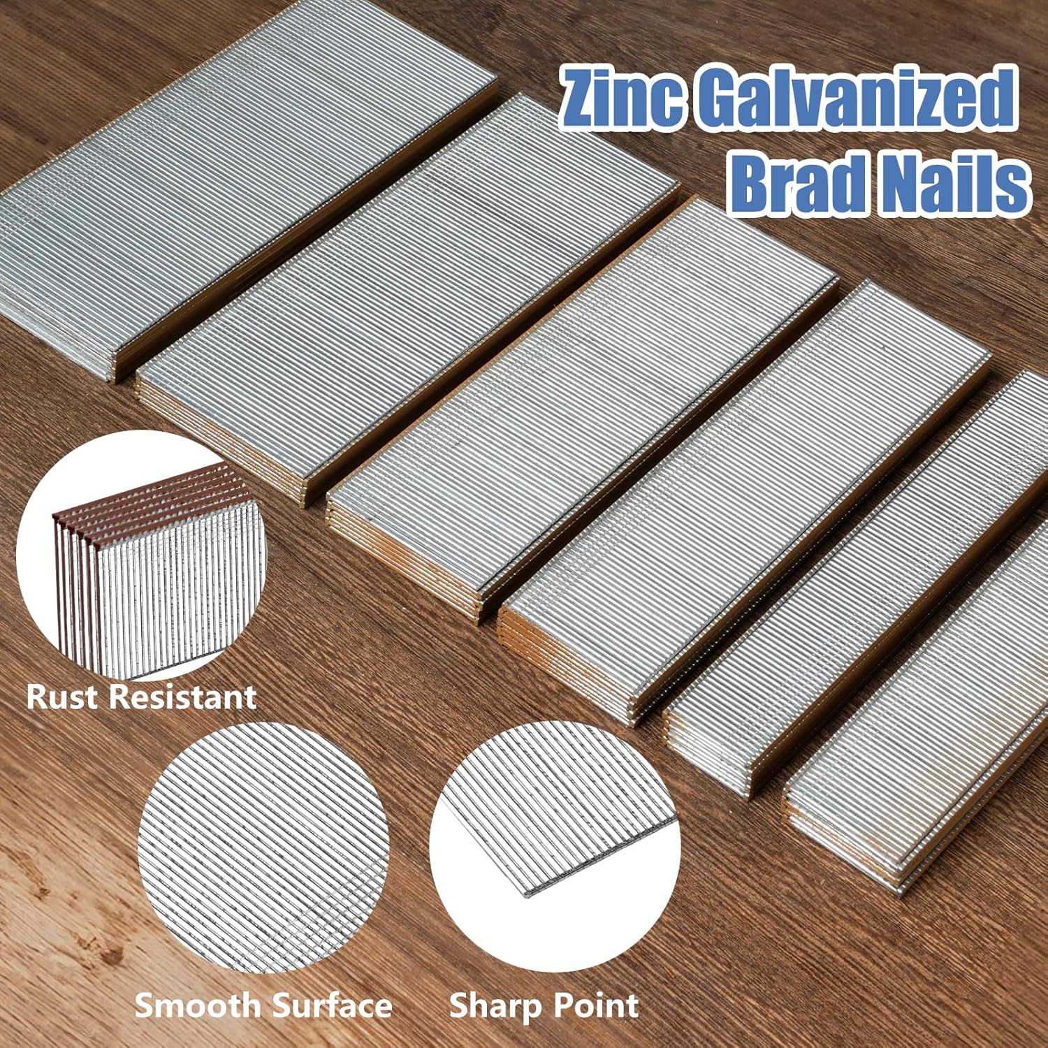 Made of Galvanized steel: The finish nails are made of the great galvanized steel, strong rust & corrosion resistance, sturdy and not easy to break, with good toughness and tensile strength, which are smooth and bright on the surface with no nail jamming