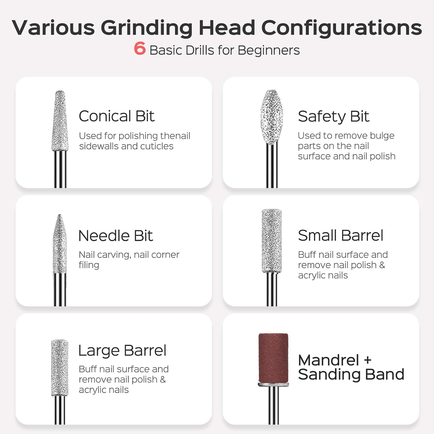 USB-C Fast Charging: This electric nail drill kit can be fully charged in just 1 hour and can be used for up to 6 hours, meeting your quick trimming needs for manicure and pedicure. This powerful and versatile cordless electric nail drill is also an ideal gift choice for nail enthusiasts