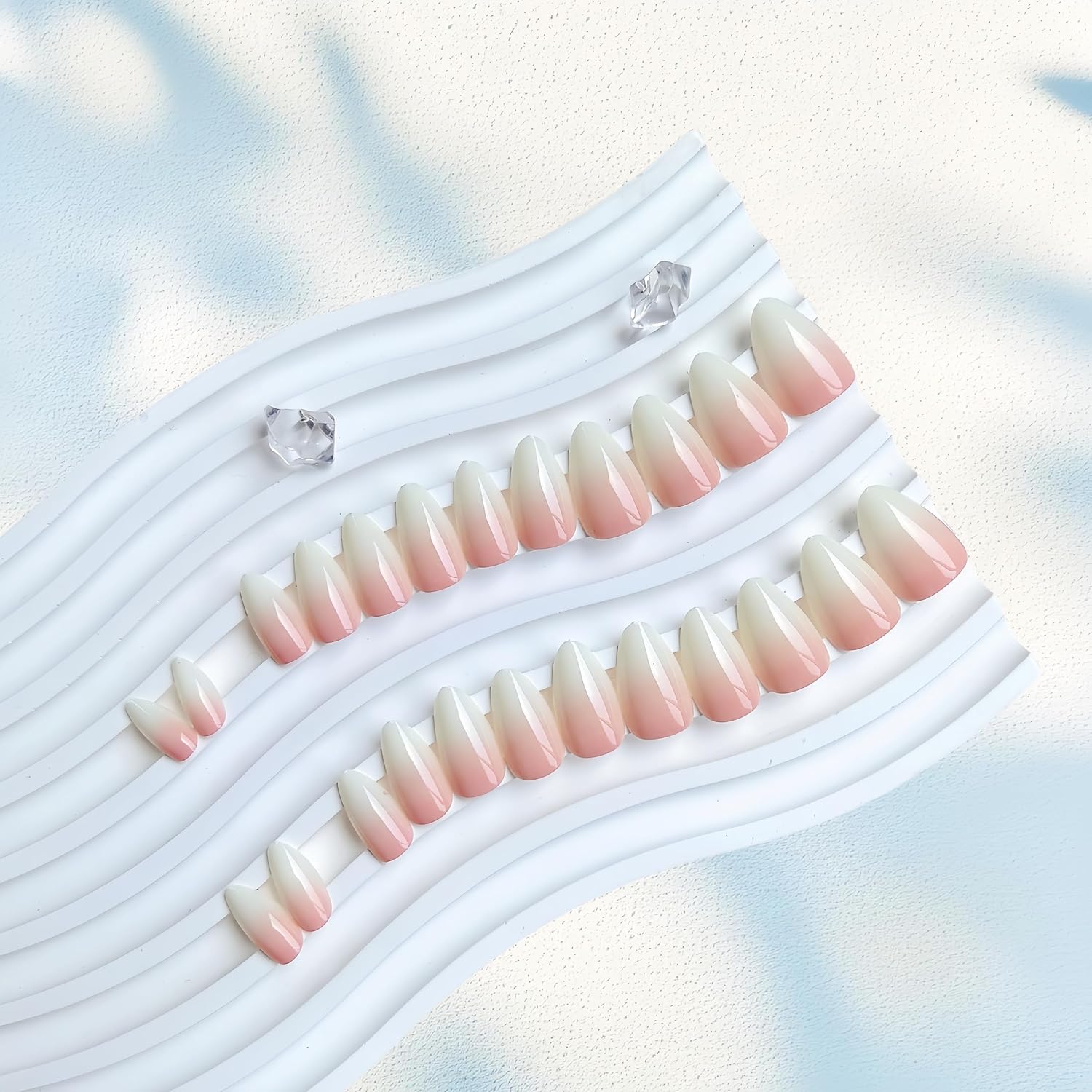 Natural Fit, Lightweight Feel: Crafted from soft, flexible material, our ombre fake nails short almond are designed to mimic the natural curve of your fingertips. The thin cuticle line ensures a seamless transition between your nails and the pink and white ombre nails, comfortable for all-day wear