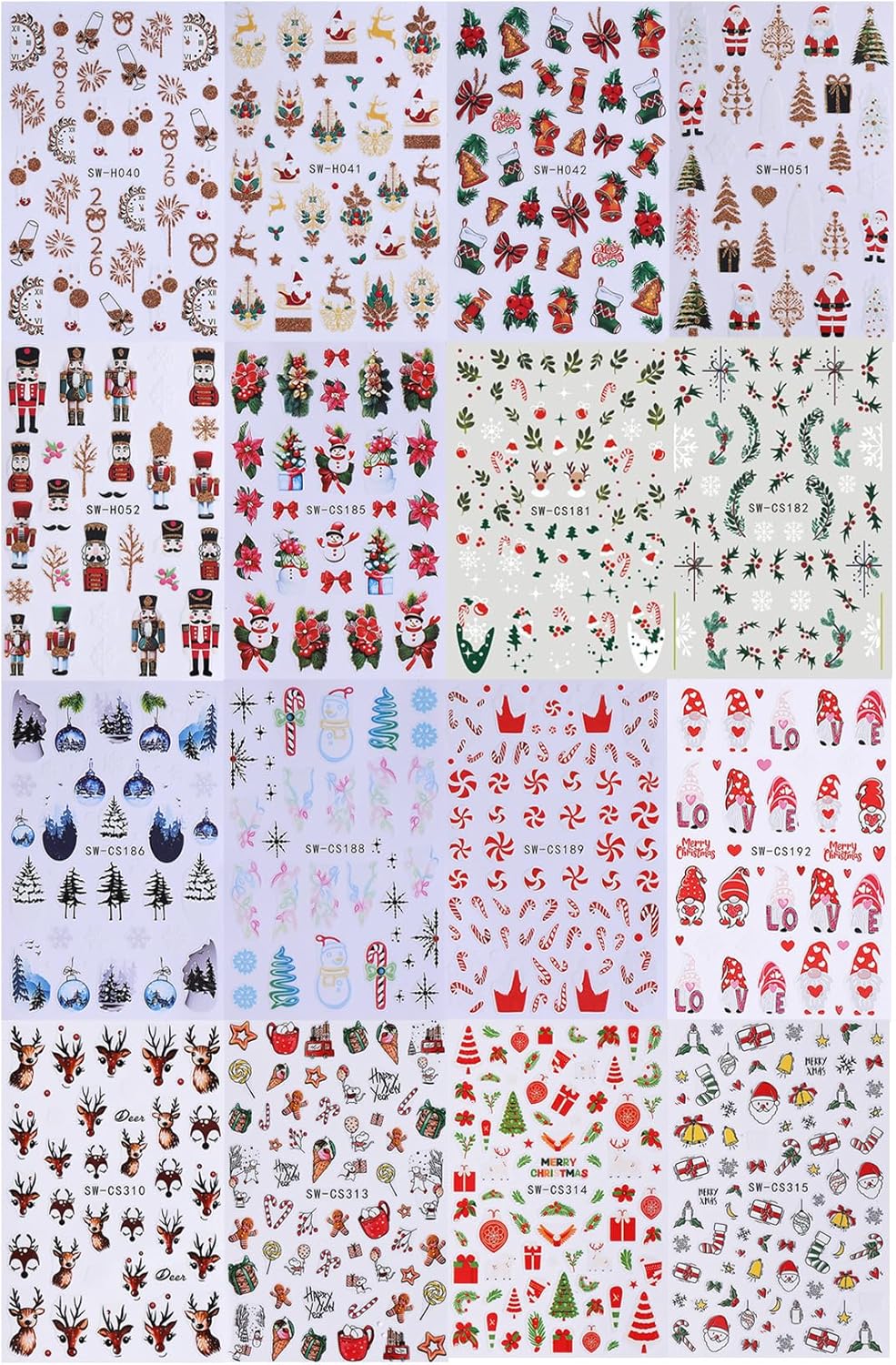 Christmas Nail Sticker Set: This sticker set includes 16 sheets 3D Christmas nail art decals, perfect for women and girls, offering a variety of options for use and replacement during Christmas and New Year manicures.