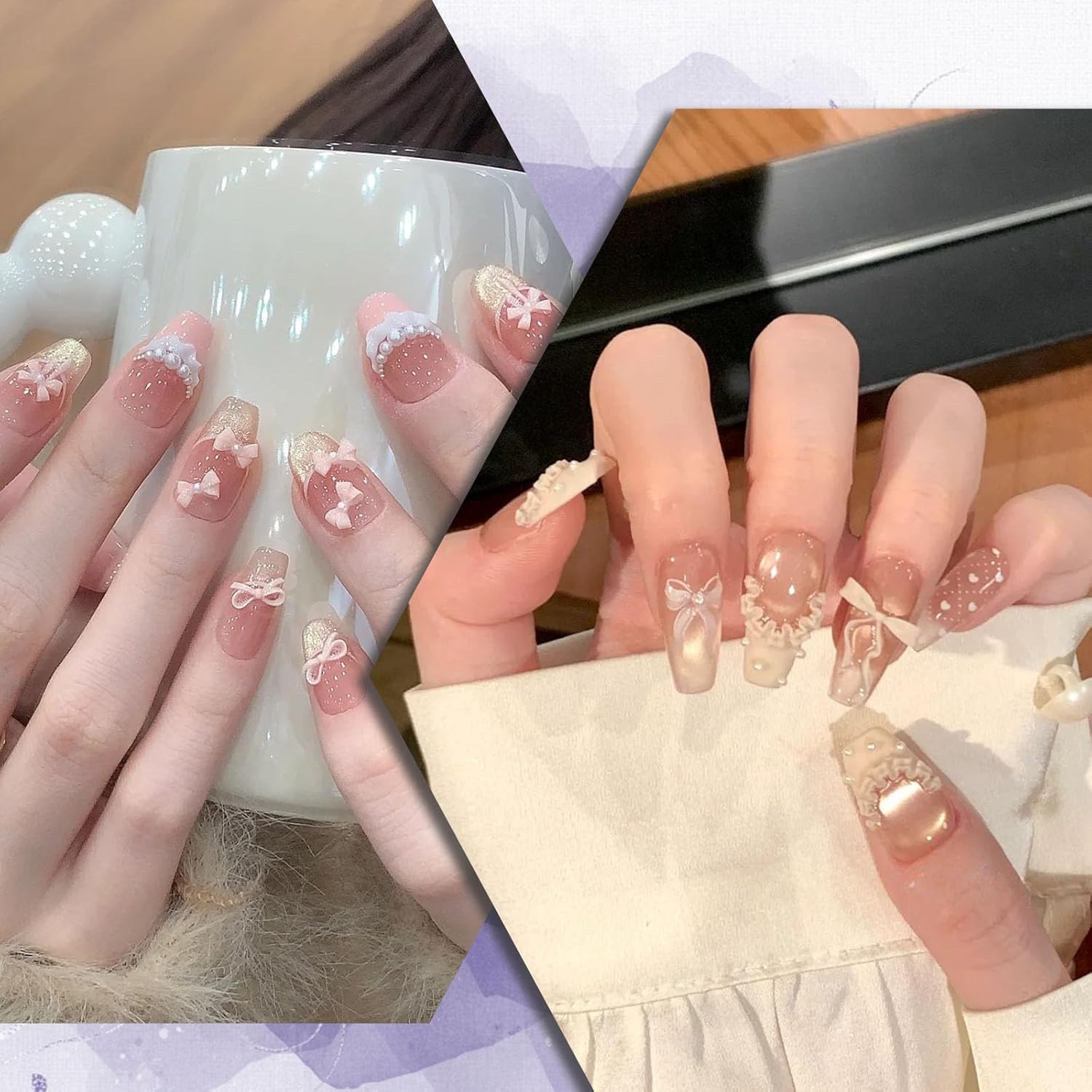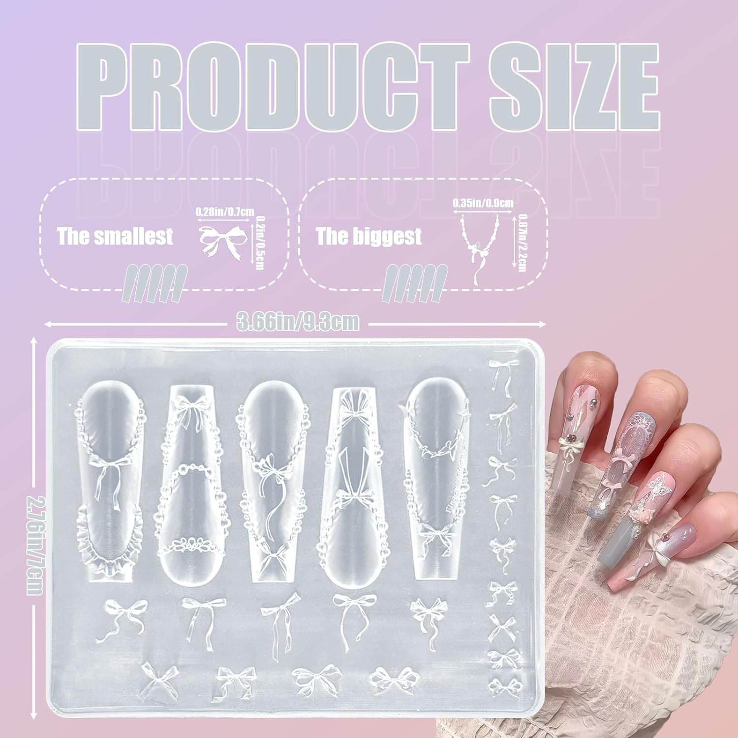 Multi-purpose: Our nail molds feature a bow and bead chain pattern design, perfect for a pink princess nail art theme. The various bow designs are easy to DIY—simply fill the mold with gel, acrylic, or resin to create fashionable bead chain bows and lace nail tips. Suitable for both beginners and professionals.