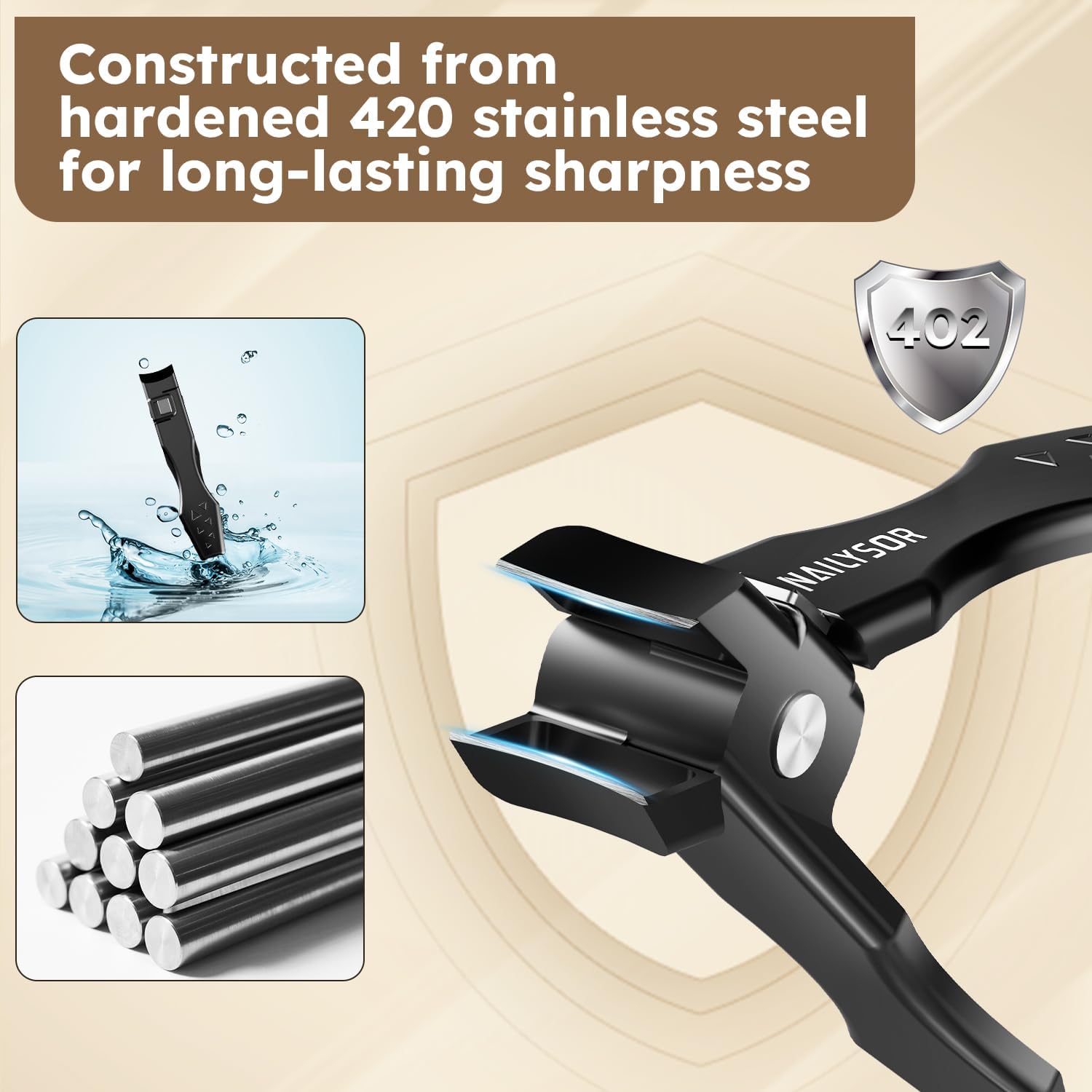 Wide Jaw Toenail Clippers for Thick Nails – Designed with a 7mm wide jaw, these heavy-duty toe nail clippers easily cut through thick or deformed nails. Made from premium 420 stainless steel, they’re durable, rust-resistant, and ideal toenail clippers for seniors, men, or anyone with tough nails caused by fungus, aging, or health conditions.