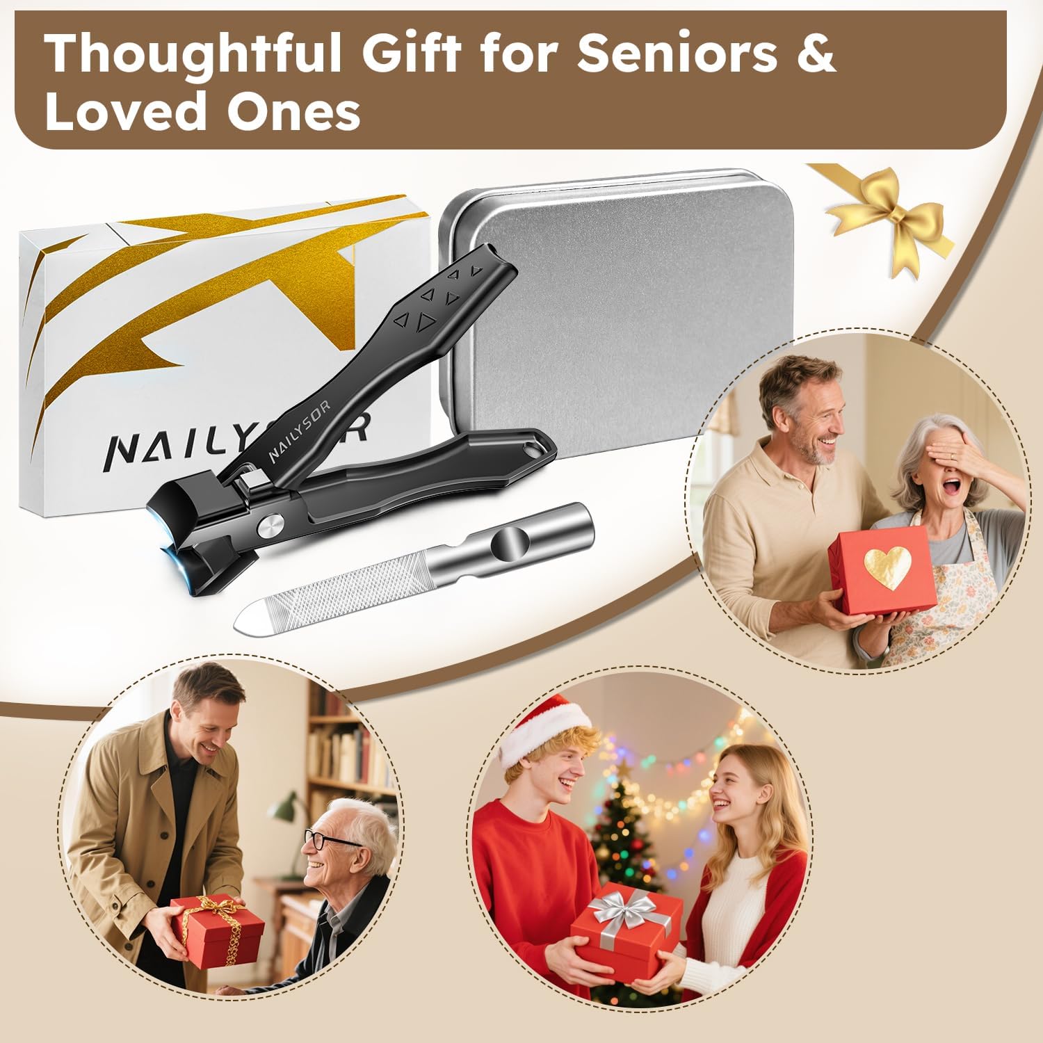 Complete Nail Clippers Set for Seniors & Men – Includes 1 x toenail clippers, 1 x nail file, and 1 x storage box. These nail clippers for men are comfortable and effective for trimming tough or thick nails—ideal for adults, seniors, elderly. Packed in a sleek box, it makes a thoughtful gift for birthdays, holidays, or special occasions.