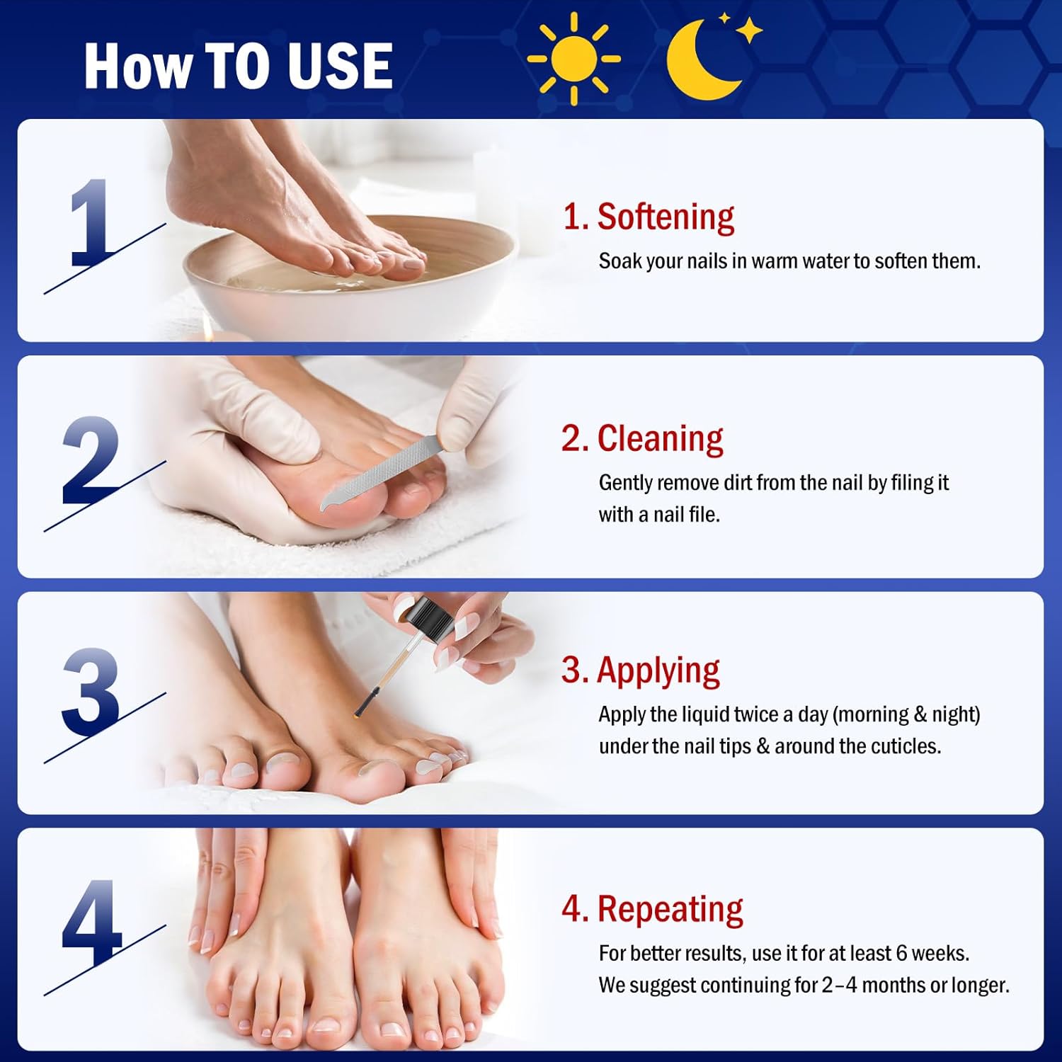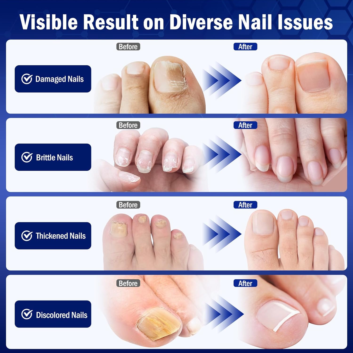 A Visible Transformation: Experience a noticeable improvement in the clarity, thickness, and strength of your nails over time. Our advanced nail care kit helps restore a clear, healthy appearance to nails by targeting discoloration, fragility and thickening.