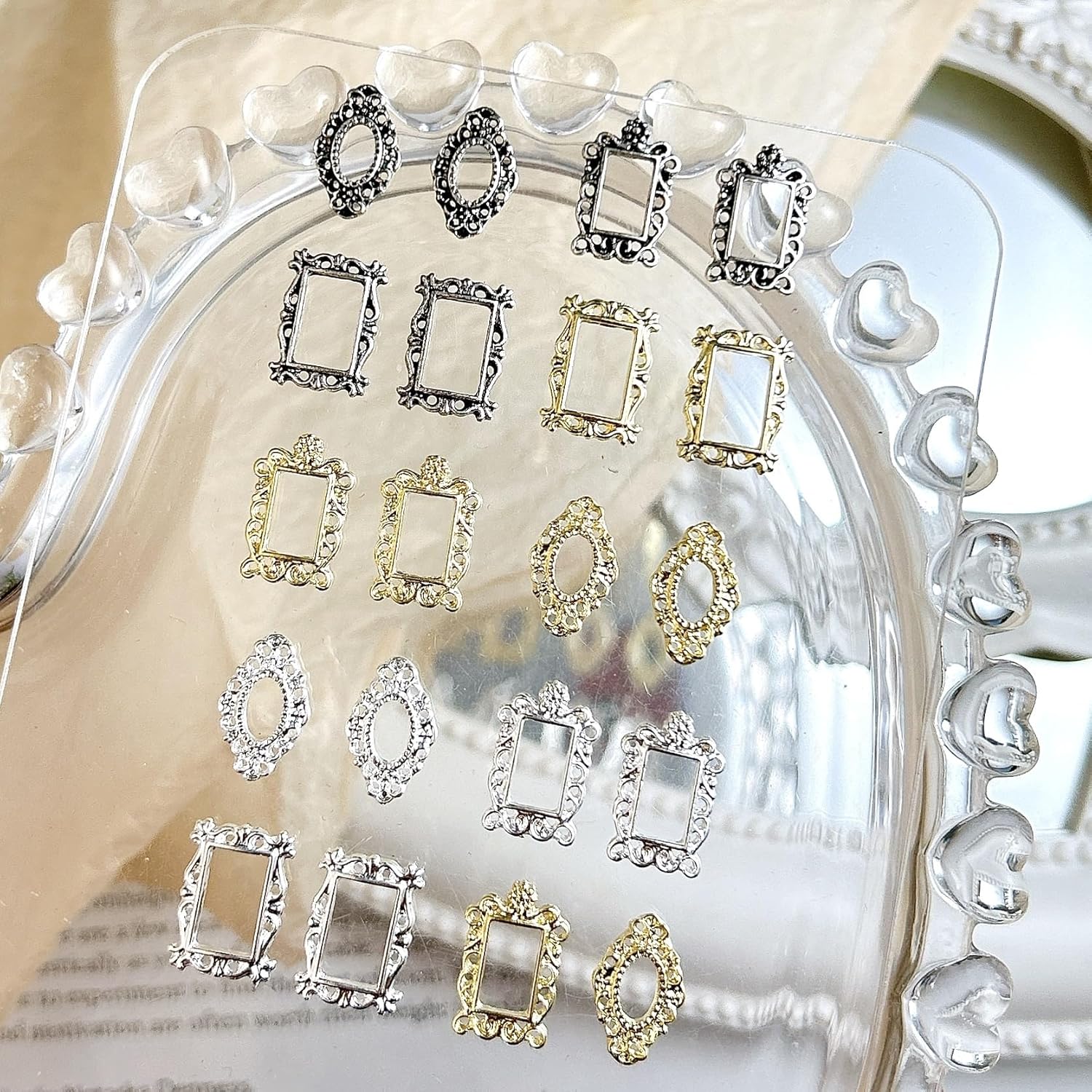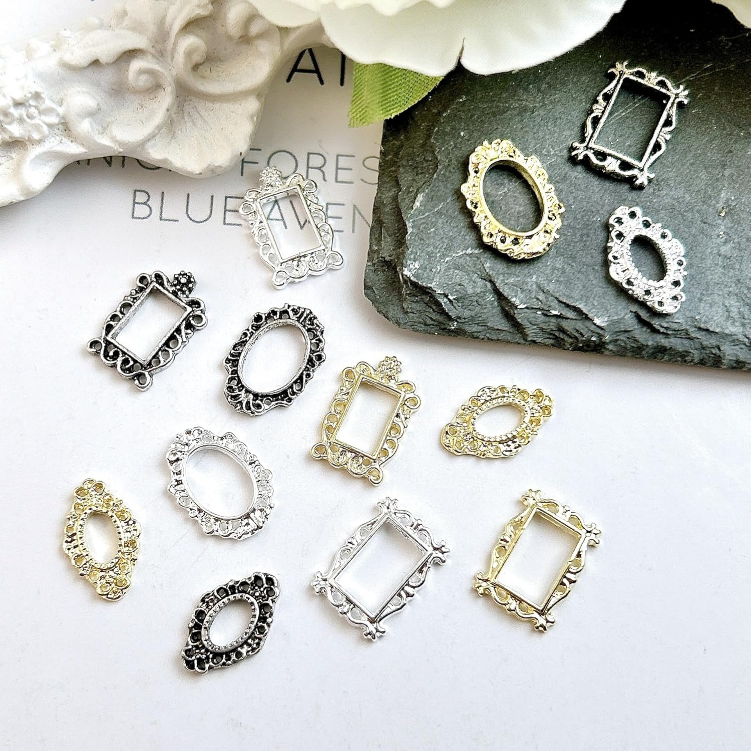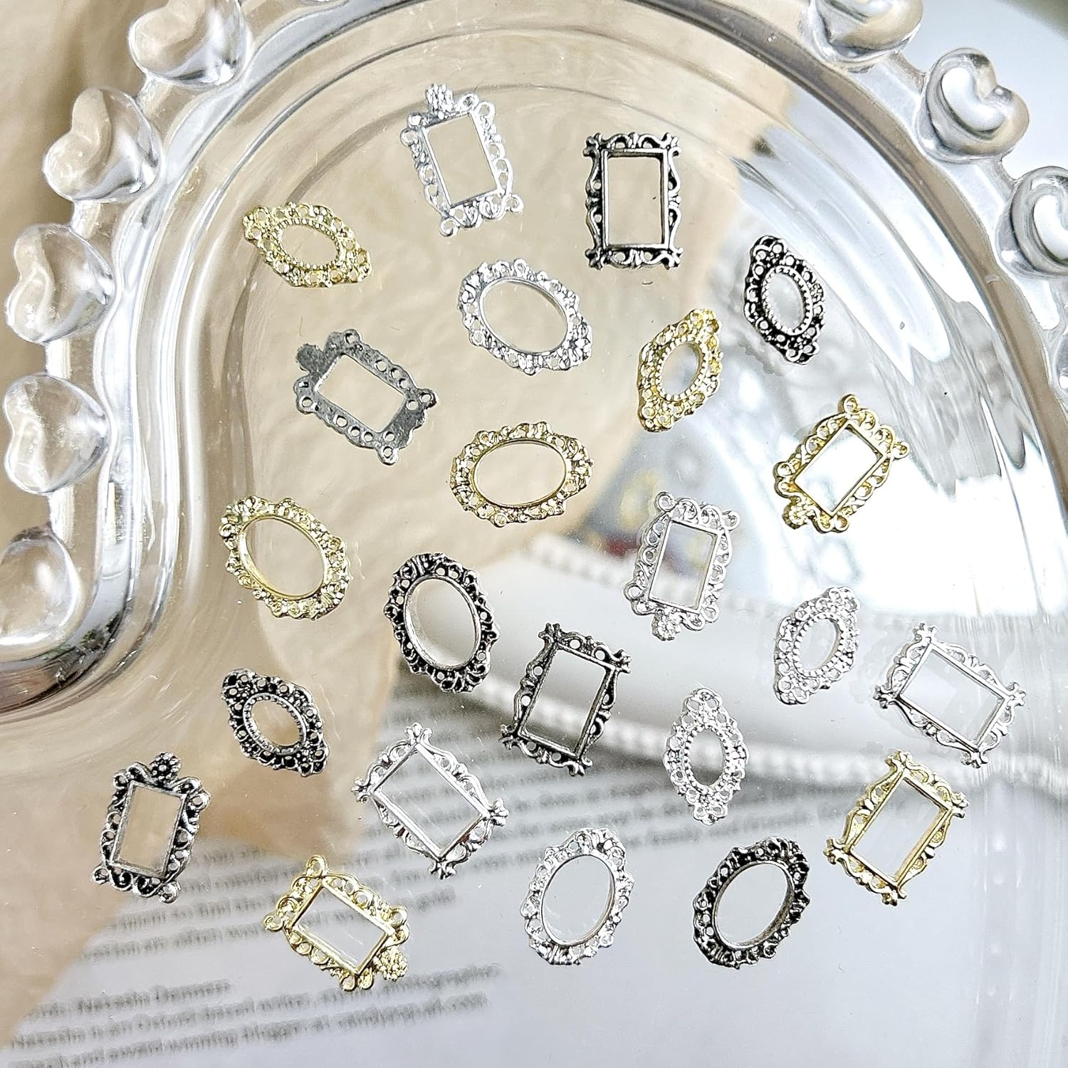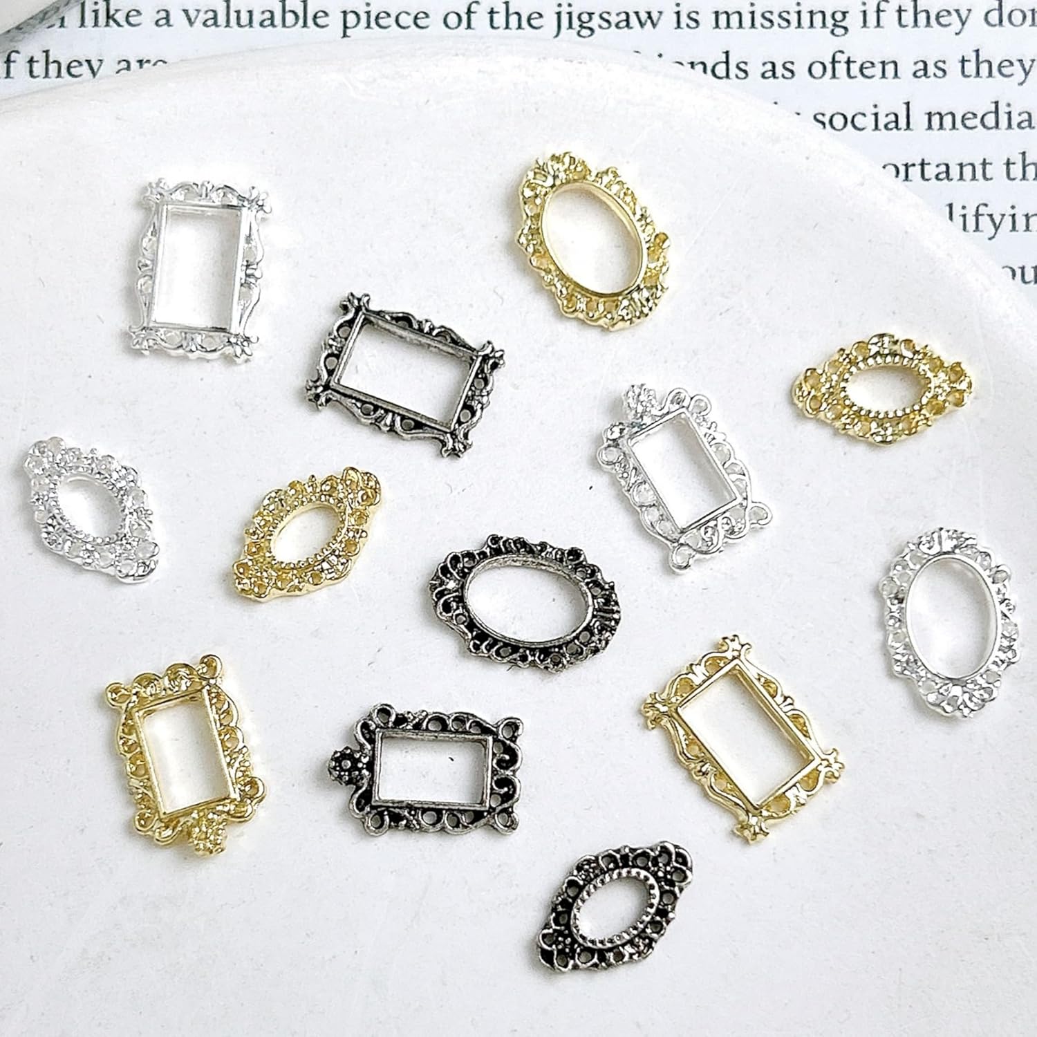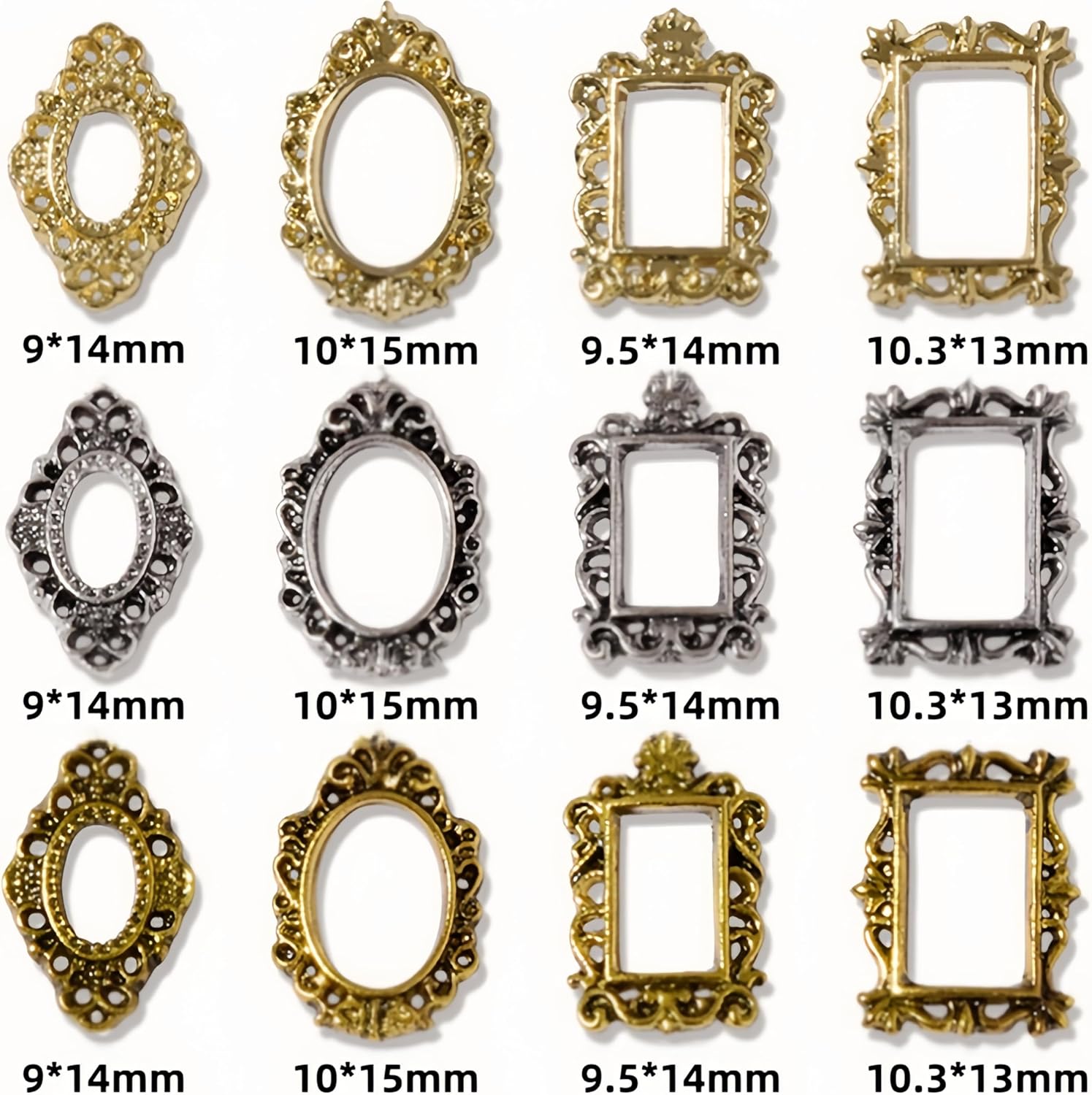 100Pcs Adorable Retro Alloy Frame Nail Charms with Crystal Rhinestones 3d Alloy Gold Silver Frame Nail Art Charms for DIY Crafts Nail Decorations