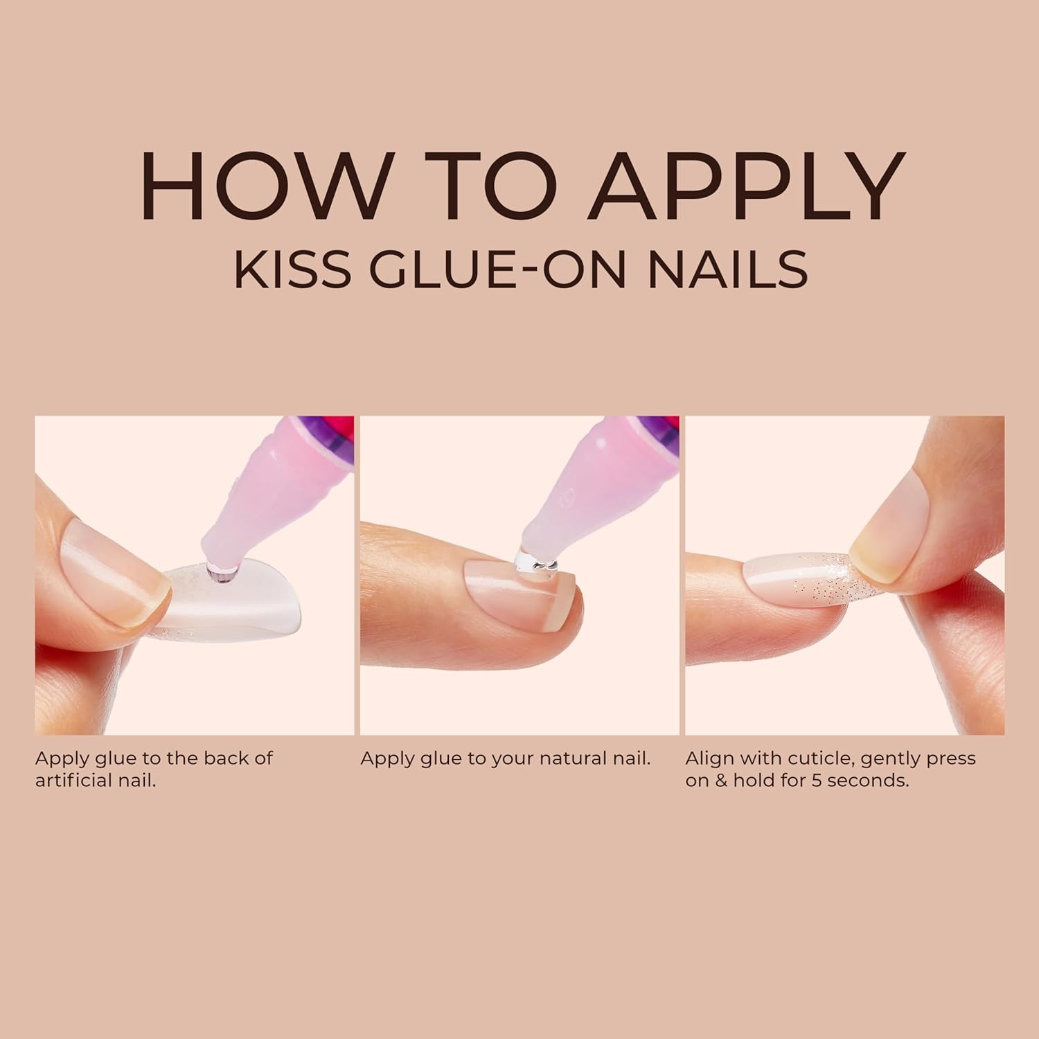 Stick with KISS: Our press on nails and glue-on nails take minutes to apply, and wear for up to14 days. Fake nails go right on over your own nails with no mess or fuss. Works best with KISS PowerFlex Nail Glue, sold separately.