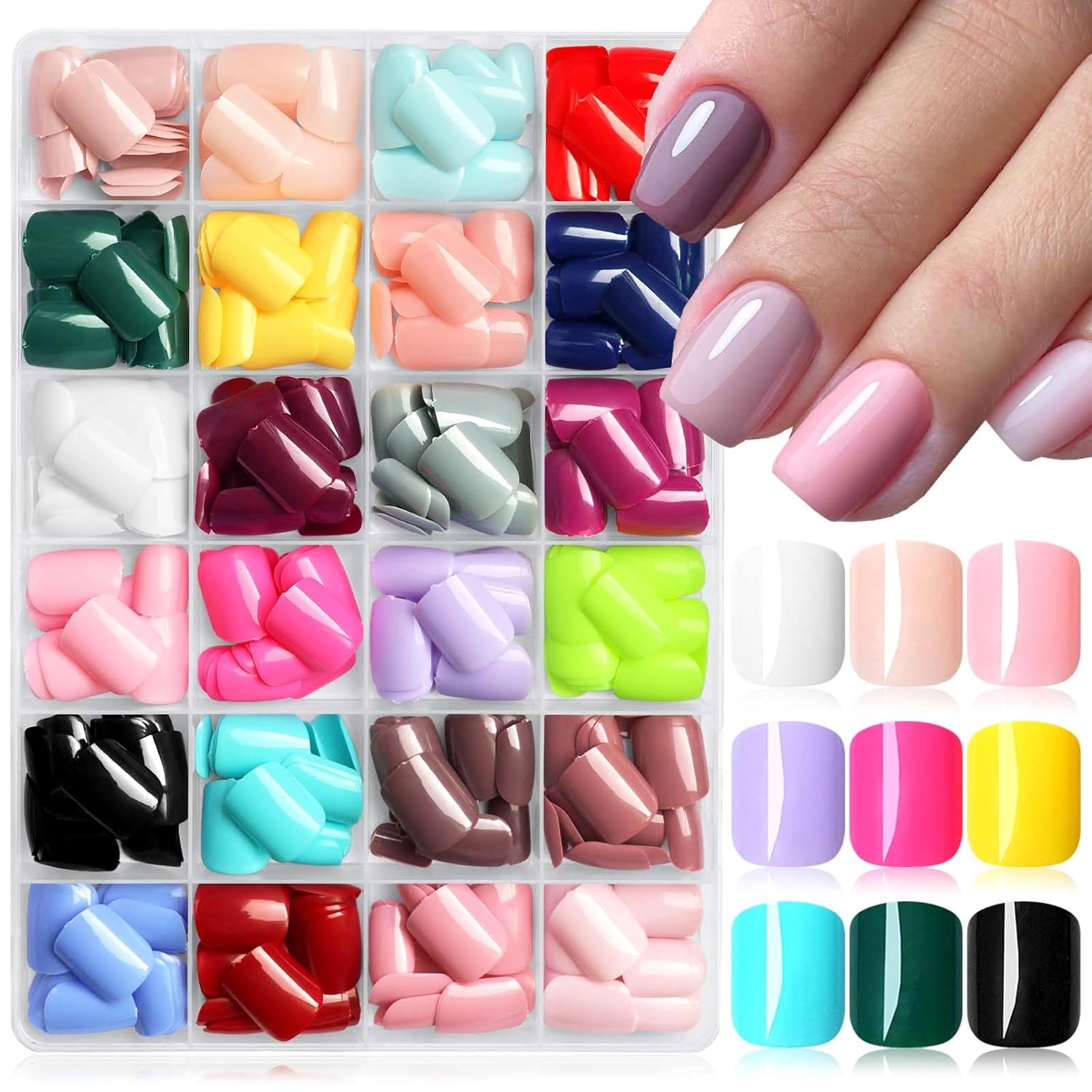24 Colors: Square acrylic nail kit packed in a clear plastic box comes with 576pc short square nails, 1pc nail file, 1pc wooden stick and 5 sheets jelly adhesive tabs. Short square press on nails kit offers 24 colors to choose from. From classic colors like black press on nails with glue, white press on nails, green, nude press on nails to bold colors like dark red press on nails, hot pink press on nails, burgundy press on nails, etc, you’ll find the perfect match for any outfit or occasion. Press on false nails short square are great for women who want to express their individuality.