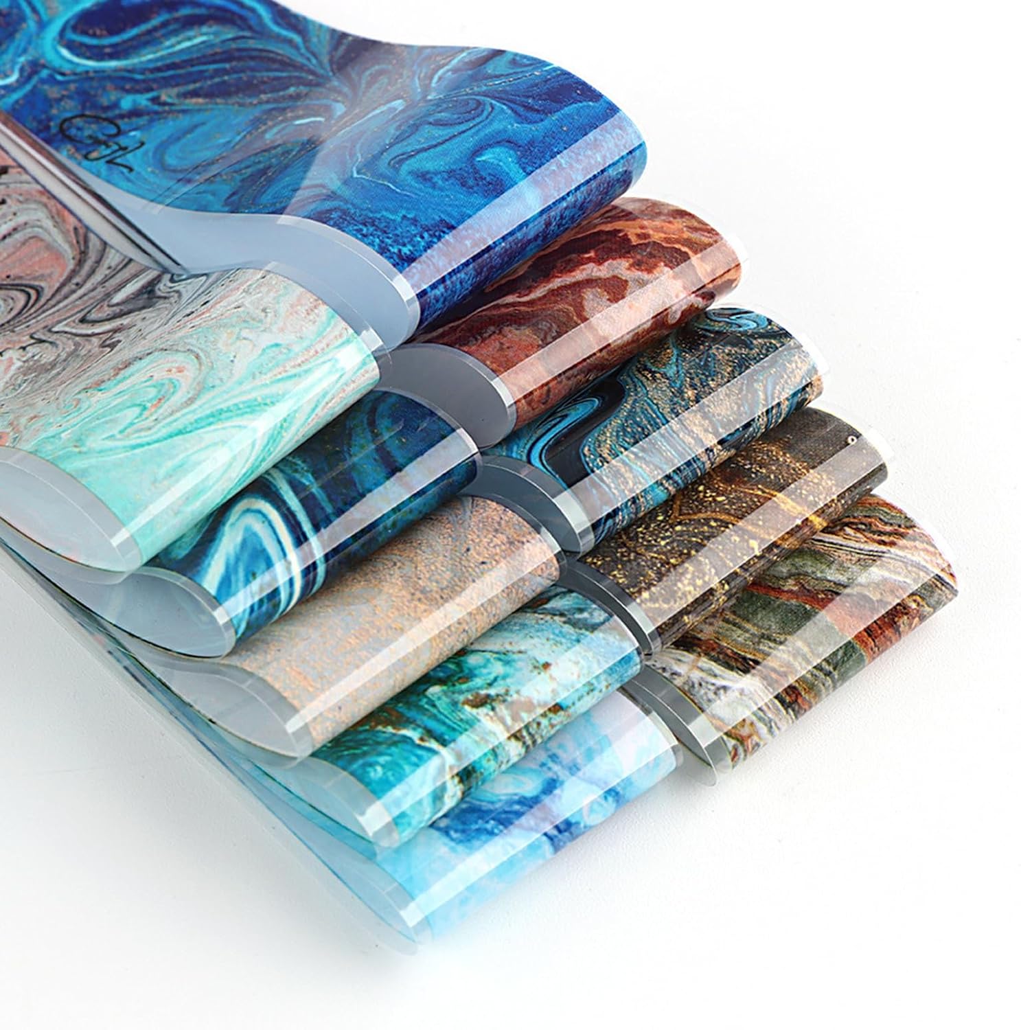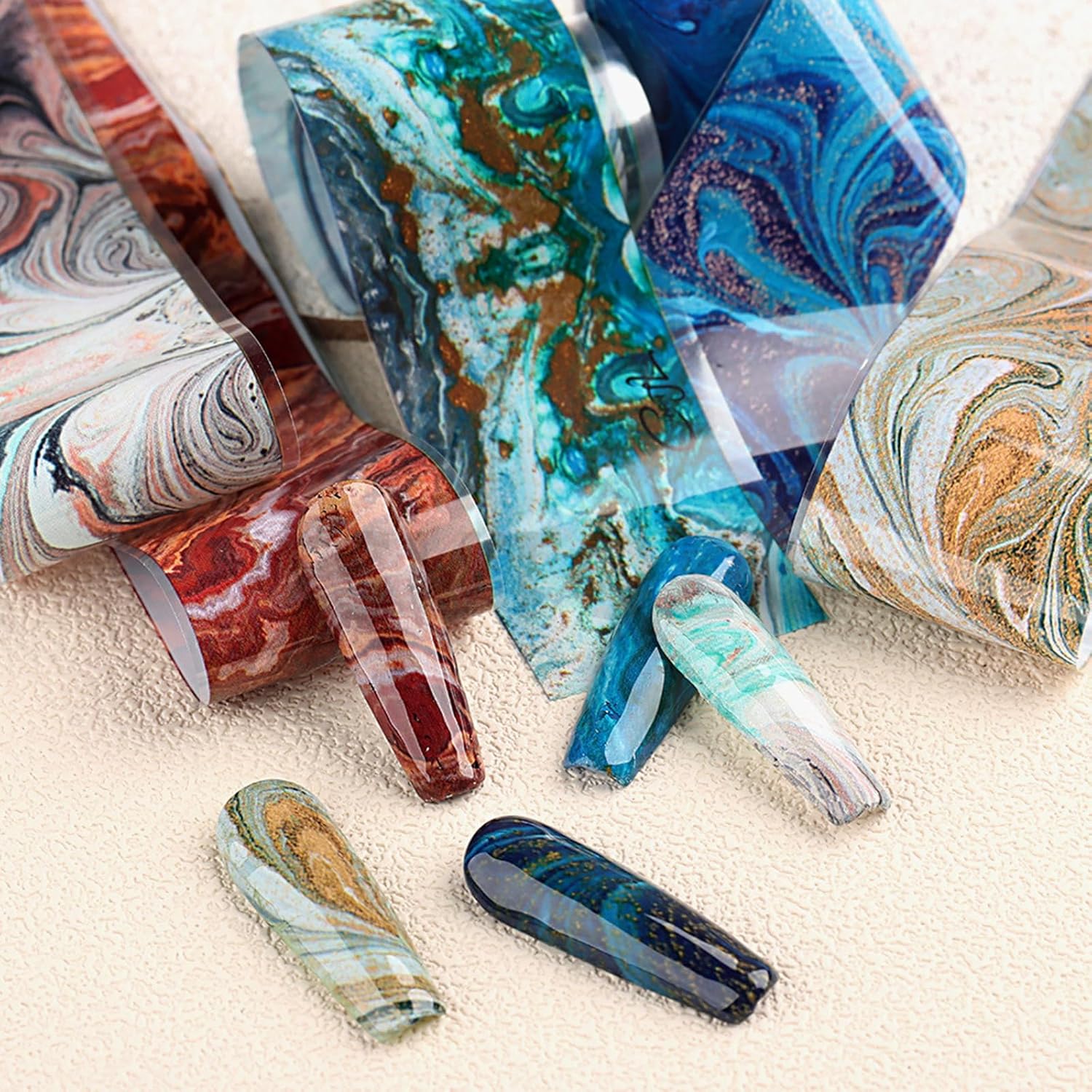 Quantity: 10PCS/Set of marble nail foil nail art stickers, a variety of colors can meet your various needs for nail design.