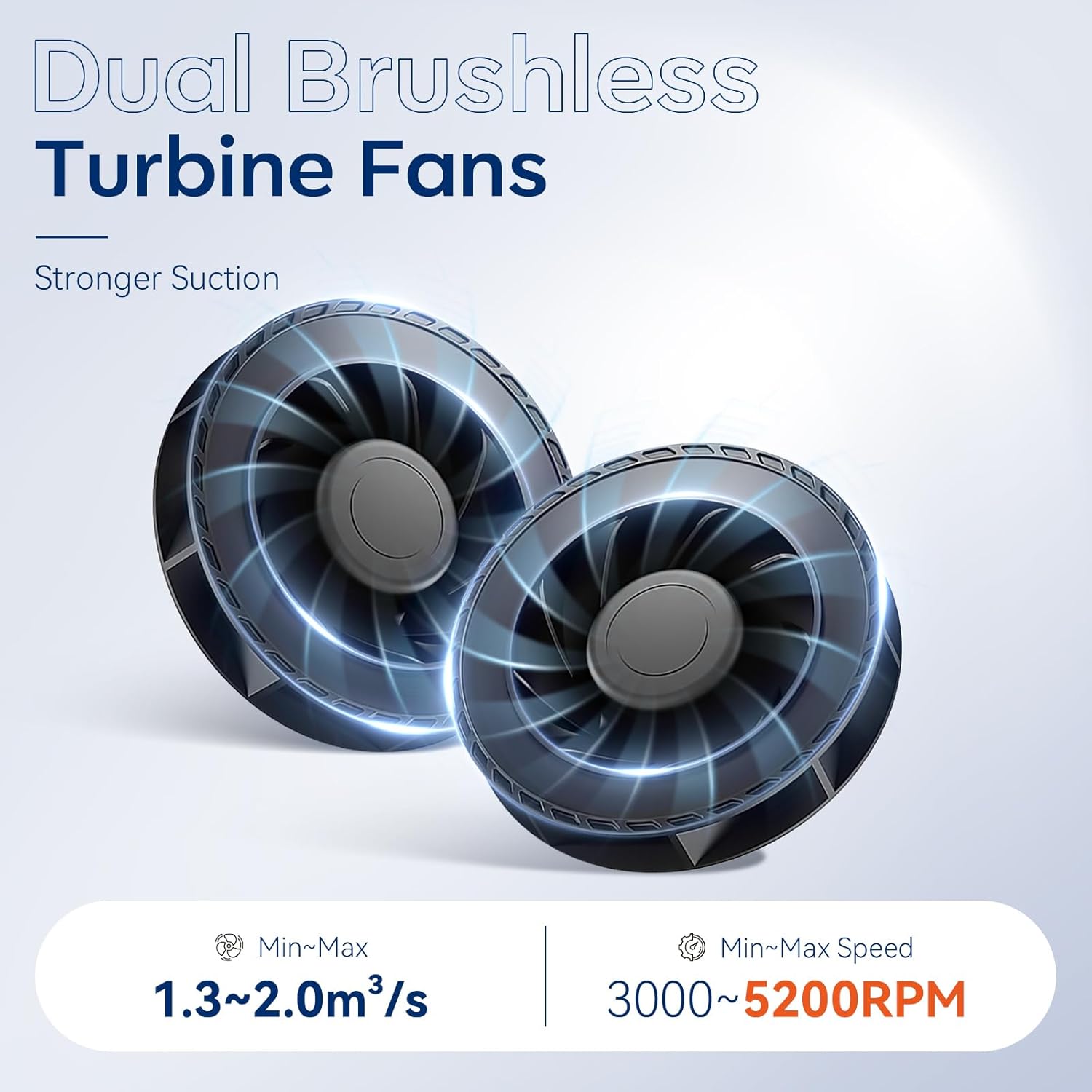 Powerful Dual-Turbine Suction: This dust extractor is equipped with 2 turbine brushless motors for powerful airflow and enhanced suction, ideal for large-scale dust collection. Up to 5200 RPM, maximum noise level is approximately 84dB
