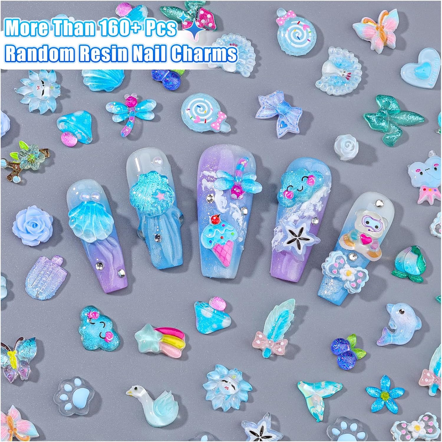 Diverse Elements: Includes adorable designs such as mixed butterflies, bows, flowers, bears, candies, lollipops, hearts, shells, trees, dolphins, stars, peaches, peacocks, fish, dragonflies, cherries, mushrooms, cat paws, rainbows, clouds, and more, all with a three-dimensional 3D effect. You can pair them with round pearl accessories to create captivating nail art decorations.
