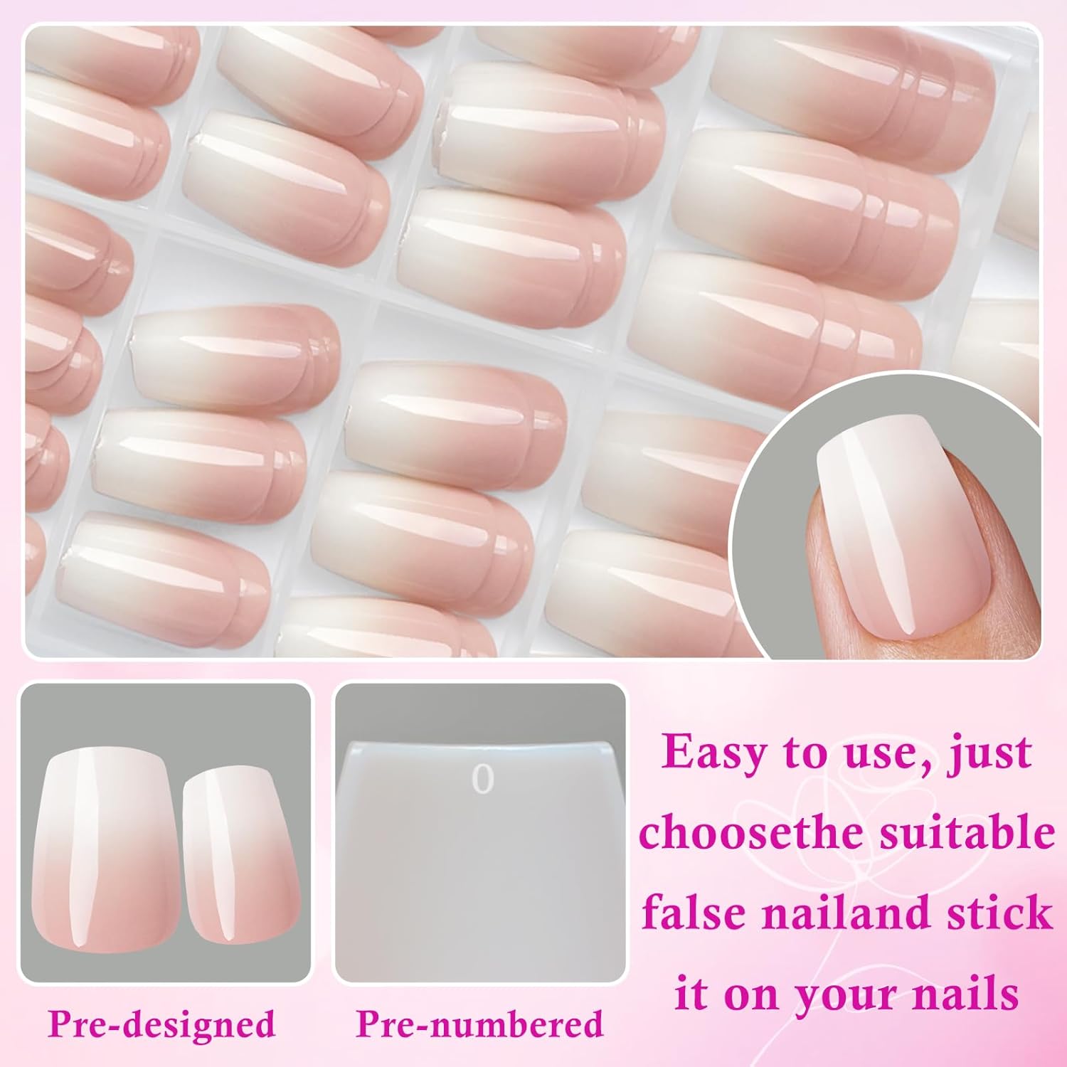 Multiple Sizes Available: Ombre acrylic glue on nails short coffin come in 12 sizes to fit different nail lengths and widths. Whether you have small or large nails, you can find the perfect fit for a comfortable and stylish look. Girls fake nails set coffin includes a variety of sizes, extra short acrylic press on nails for girls ensure a precise match for each of your fingers, making reusable press on nails short ombre suitable for all nail shapes and sizes. Extra short fakenails press ons coffin ensures that everyone can enjoy the beauty and convenience of short nail tips coffin.